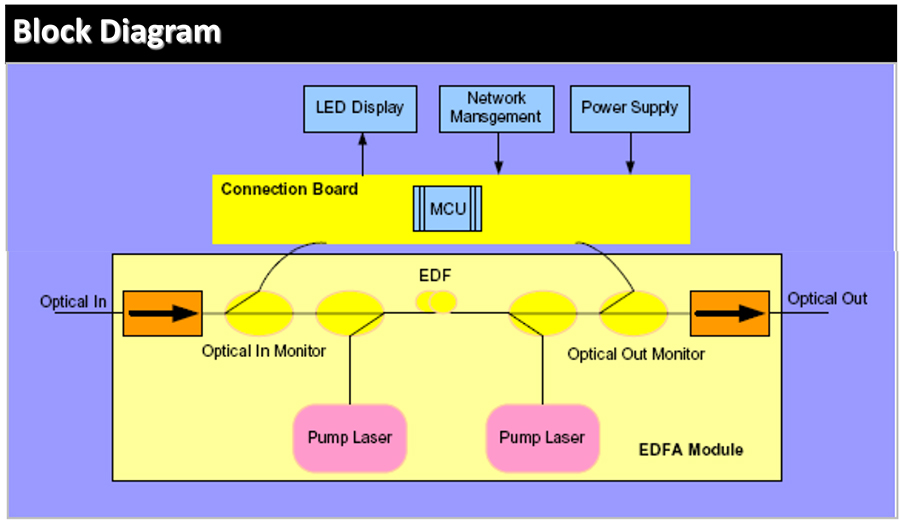 Headend system. With a highly reliable single or double 980nm Pump Laser,low noise figure, and a wide range of optical output powers (14dBm to