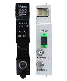 GSDT-FTX光發(fā)射機(jī)模塊是專門為現(xiàn)在和將來之HFC及FTTH應(yīng)用而設(shè)計(jì)的1310nm直調(diào)光發(fā)射機(jī)。發(fā)射機(jī)使用高性能制冷型1310nm DFB光源,采用先進(jìn)的預(yù)失真電路,使系統(tǒng)具有良好的CTB和CSO特性,其嵌入式單片機(jī)處理電路監(jiān)測和控制所有的參數(shù)狀態(tài)及遠(yuǎn)程通信,可以通過訪問前面板之LED或EMS設(shè)備管理模塊來獲取這些參數(shù)信息。